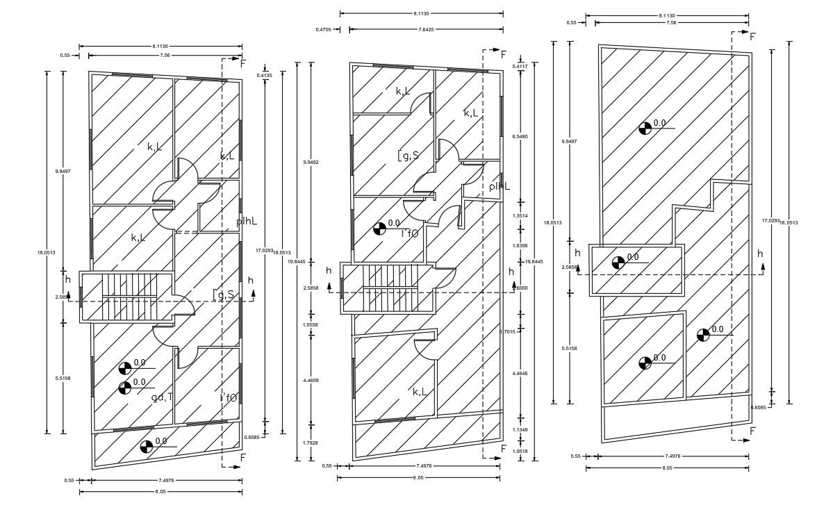 Architecture AutoCAD drawing of 3 storey house apartment floor plan design includes 3 bedrooms, drawing room, kitchen and living area. download DWG file of 1400 sq ft house plan with dimension detail.