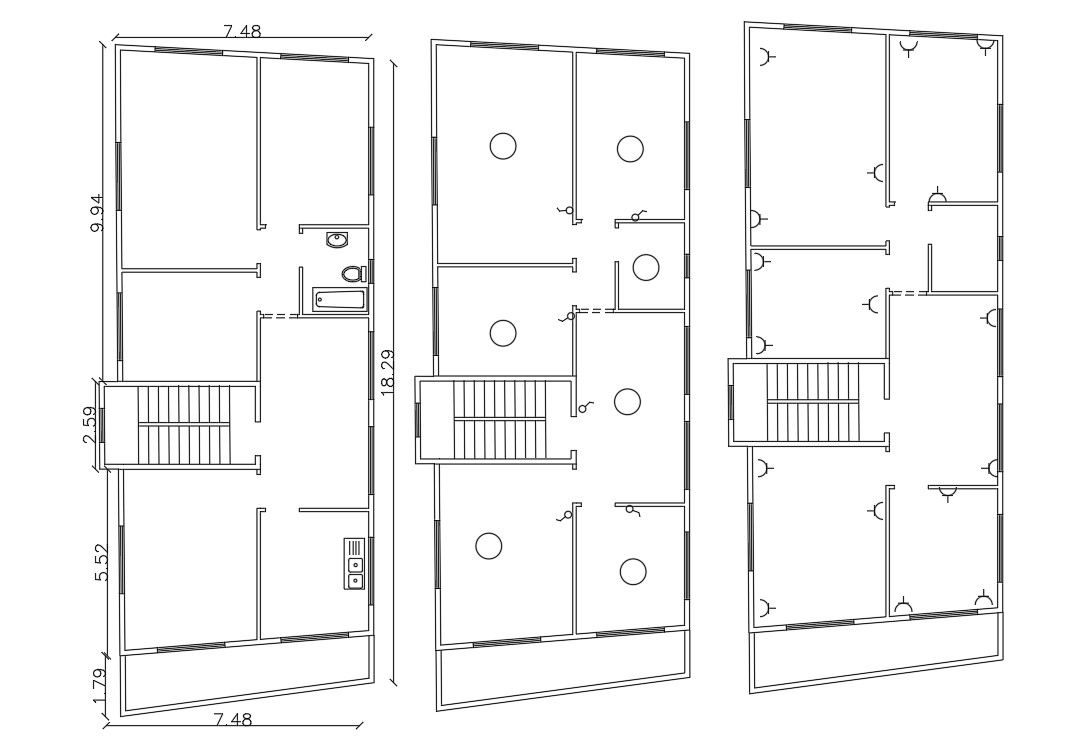 AutoCAD drawing of apartment house floor plan design includes electrical layout plan with ceiling light and switchboard point. download DWG file of 1430 SQFT 3 BHK house apartment plan with sanitary ware detail.