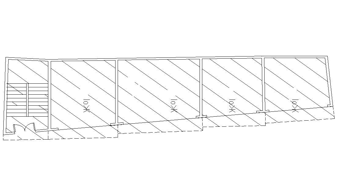 ground floor plan of commercial building design, in this drawing, added four shops with stair design with some hatching design in plan, free download this drawing and use in a related project.