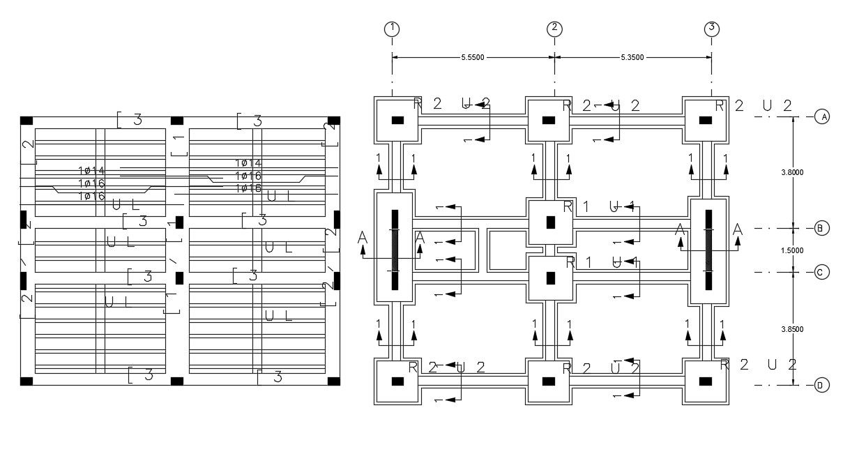 Download free DWG file of house construction house column footing with excavation plan and RCC slab structure design.