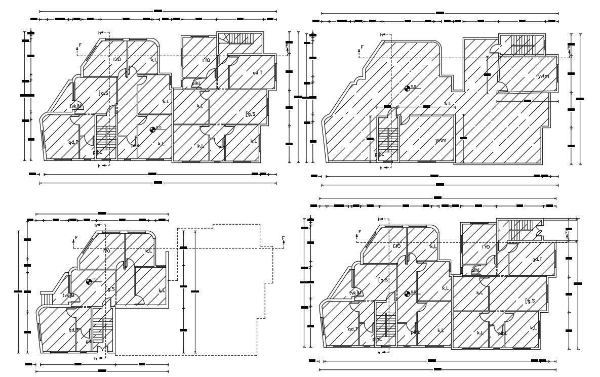 The architecture AutoCAD drawing of residence house apartment plan design includes a cluster plan with 2 unit plans. download DWG file of 3 BHK apartment house plan drawing.