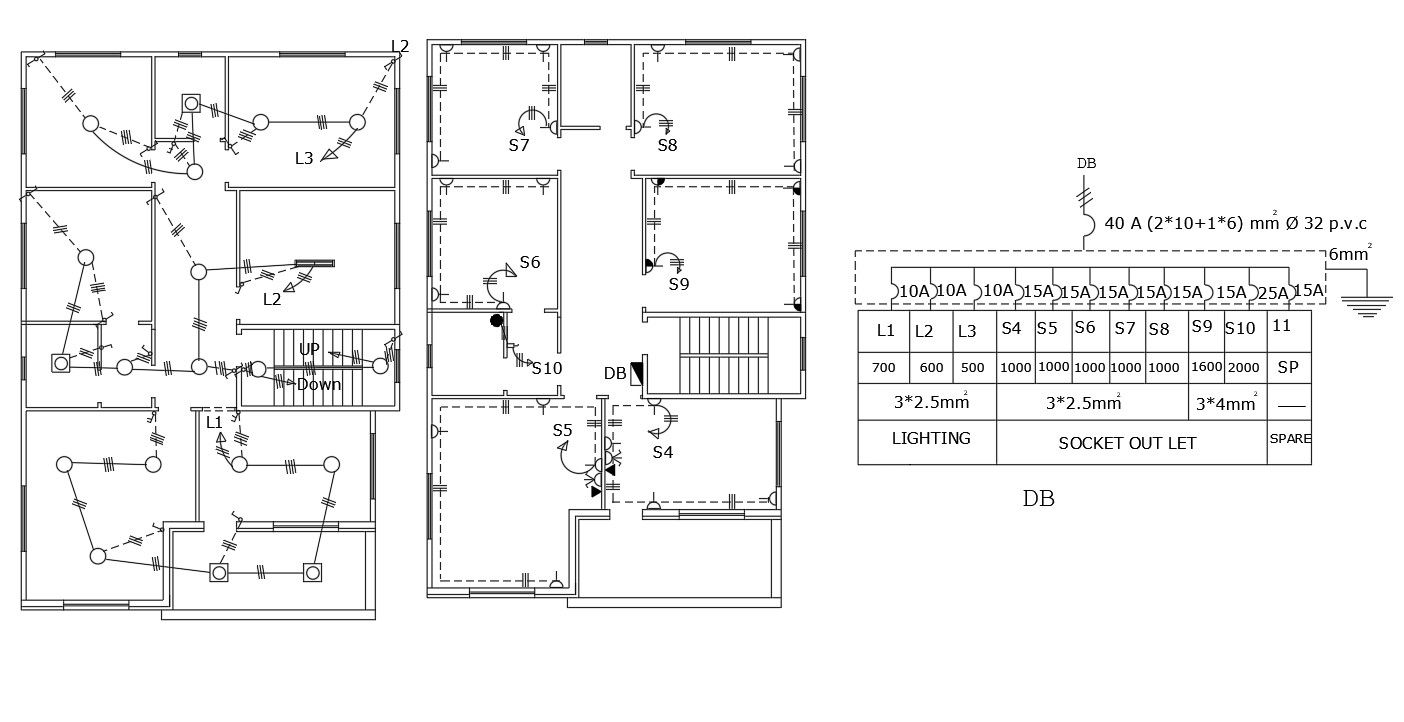 36 feet by 55 feet plot size of west facing house plan with an electrical layout plan that shows wiring plan, ceiling light and switchboard point. download AutoCAD house electrical layout plan with power supply chain diagram detail.