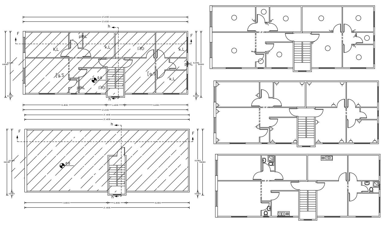 Architecture AutoCAD drawing of 1700 Sqft plot size for 2 unit house apartment floor plan. this is 2 BHK house plan with the electrical layout and sanitary ware detail. Download Apartment house with terrace plan design.