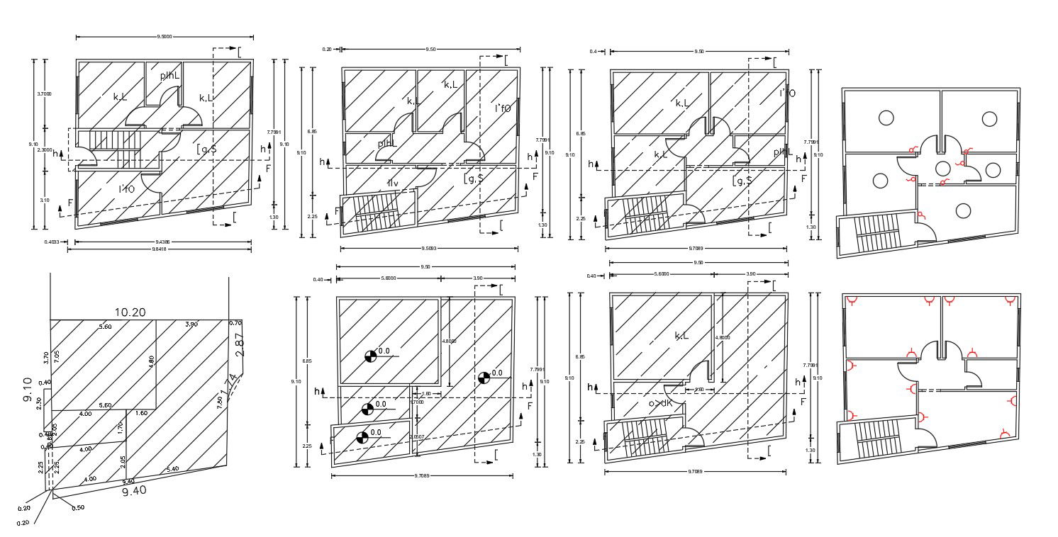 7 bedroom house plan for 30 feet by 30 feet plot with 3 storey floor plan AutoCAD drawing. also has electrical layout plan and 100 square yards plot size and survey detail. download DWG file of a house floor plan design.