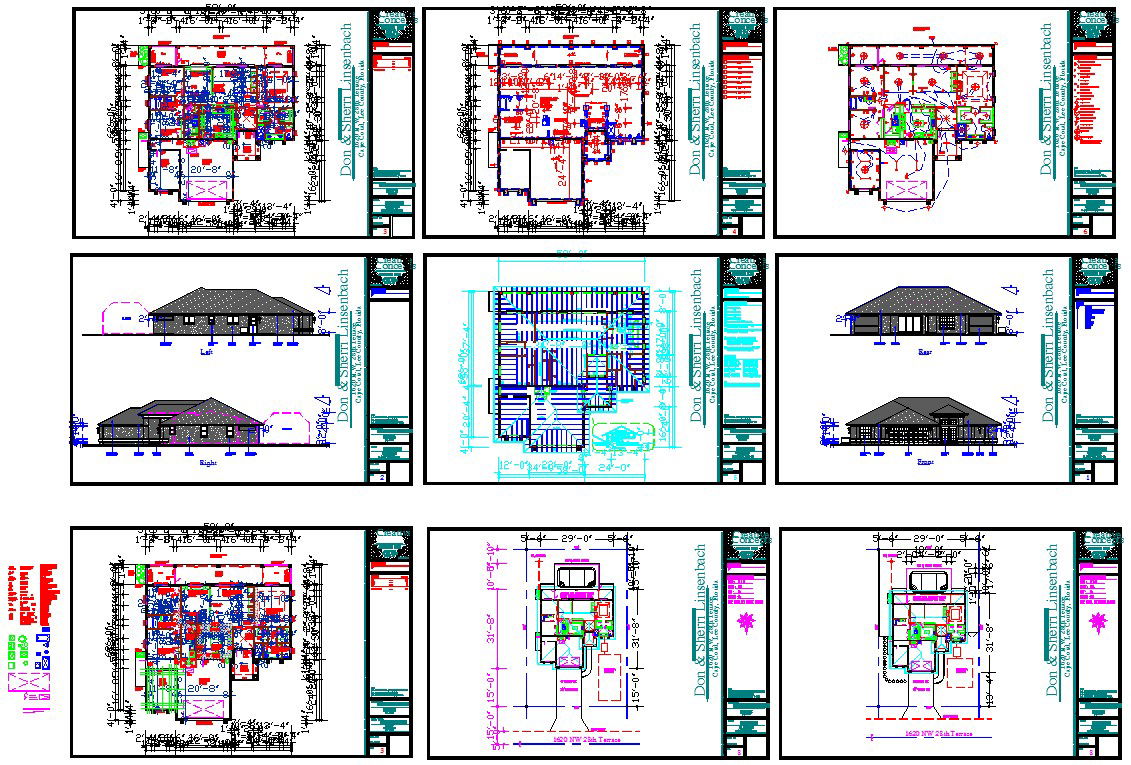 House architecture projects detail. Incude presentations plan, working plan, sections , elevations, elevations of all sides, Electric layout detail, House sections, flooring detail, rcc, strcucture detail of this house. This plan made from autocad files.
