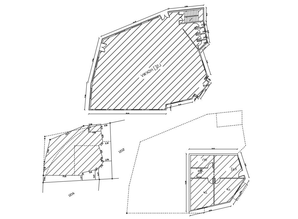 Download free DWG file of multipurpose hall and top floor 2 BHK house plan design with dimension detail. also has a site plot plan with land survey detail.