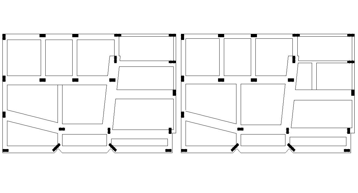 The architecture drawing plan given column and beam details and also planning of living area, dining area, store room, bedroom, toilet, washroom, and other room. download CAD file.