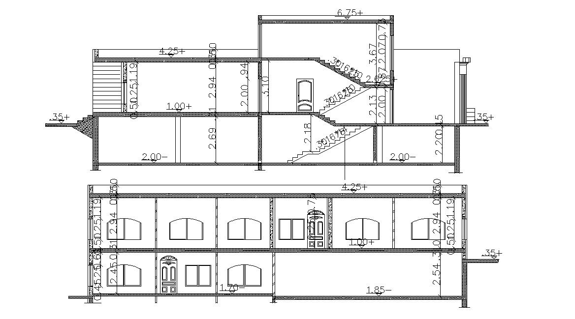 The drawing section layout with dimension details, slab details, floor level, plinth level, doors and windows details and other details. this is download CAD file.