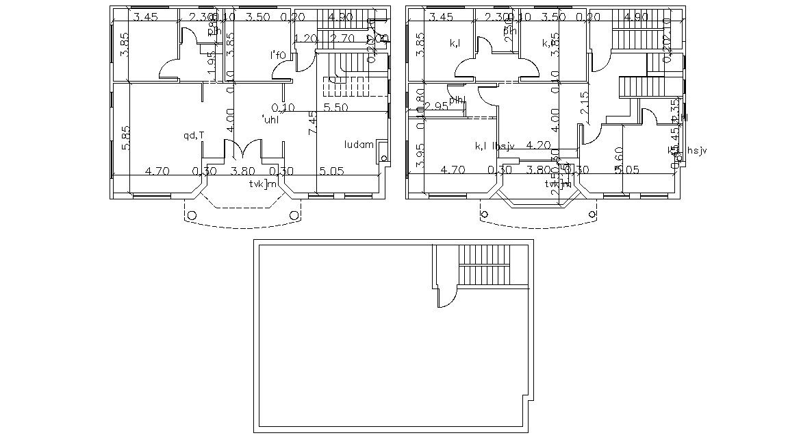 A drawing which given details of ground floor, first floor and terrace floor plan in bedrooms, kitchen, washroom, toilet, staircase with dimension details. download DWG file.