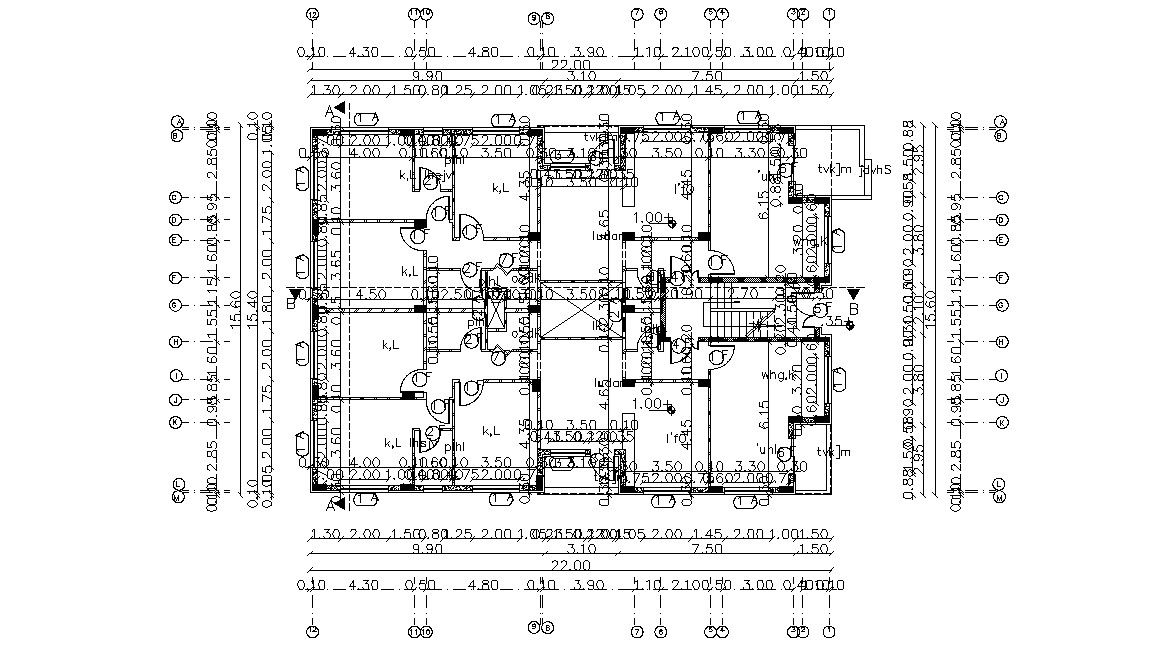 This modern architecture drawing include bedroom, kitchen, living area, dining area, toilet, washroom, staircase, doors, windows, lift, and other details. the ground floor plan is 22 X 15.60 meter. download AutoCAD file.