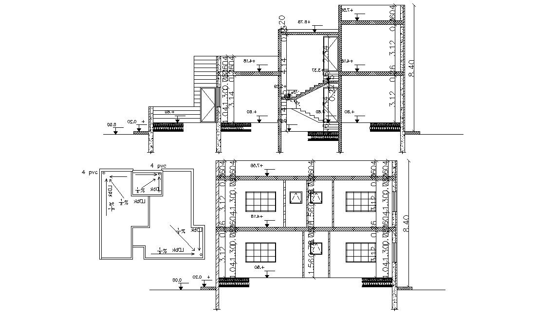 The drawing section layout include sill level, plinth level, floor level, slab details, dimension details, stair details, doors and windows details. download AutoCAD file.