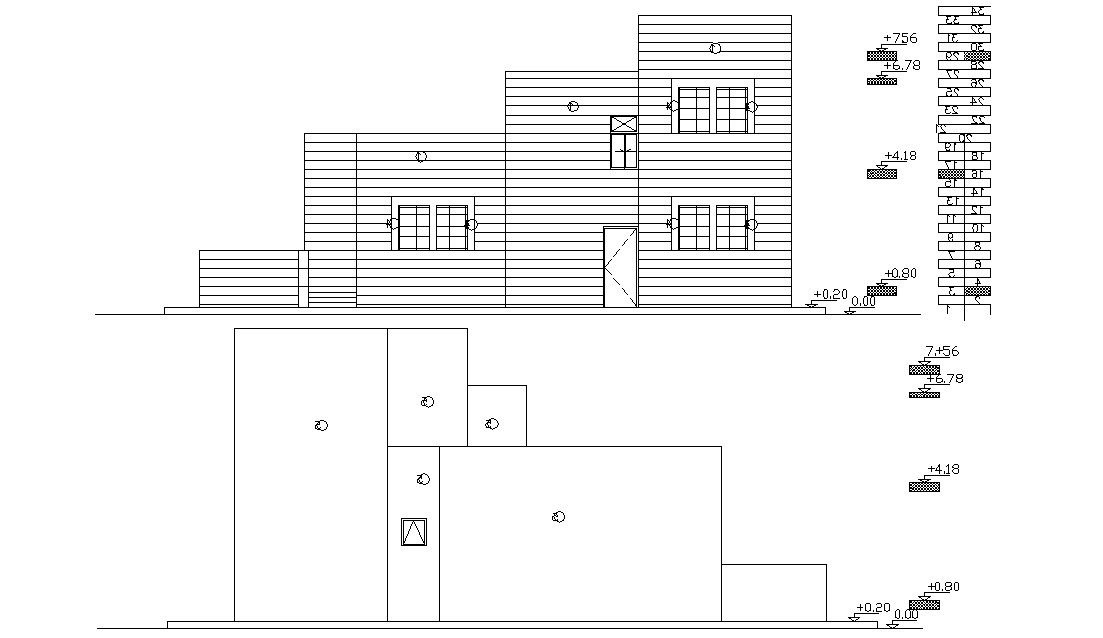 The simple elevation layout include floor level, plinth level and hatching. download AutoCAD file.