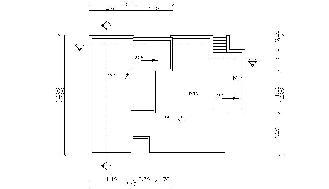 The plan of terrace floor plan include parapet wall, section line also given the dimension details. download CAD file.