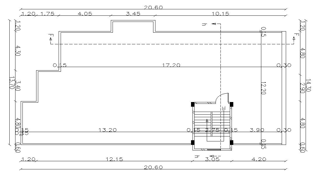 The drawing terrace floor plan is 20.60 X 14.30 meter and also stair cabin with dimension details. download AutoCAD format.