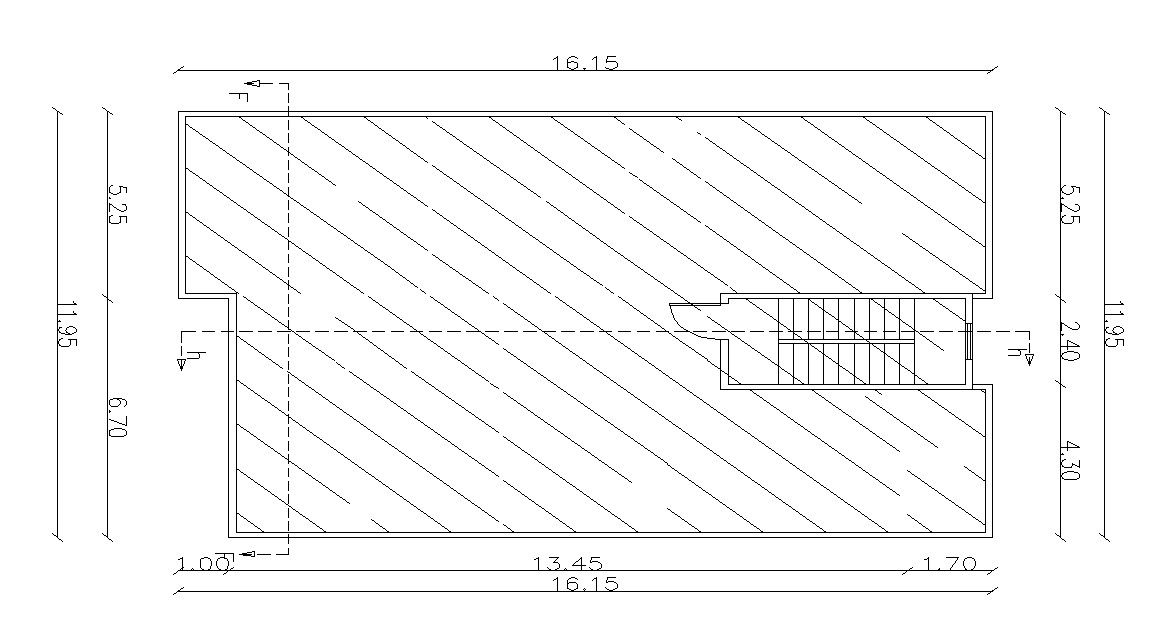 The terrace floor plan is 16.15 X 1.95 meter, showing stair cabin, overhead water tanks, etc. also give parapet wall, section line with dimension details. download DWG file.