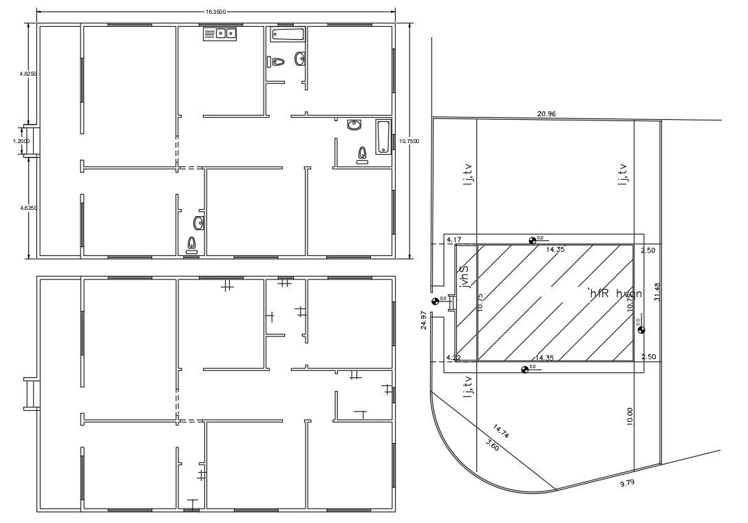 The architecture House ground floor plan for 32 feet by 62 feet plot size with land survey detail. download 3 bedroom house plan drawing with sanitary ware detail on AutoCAD format file.
