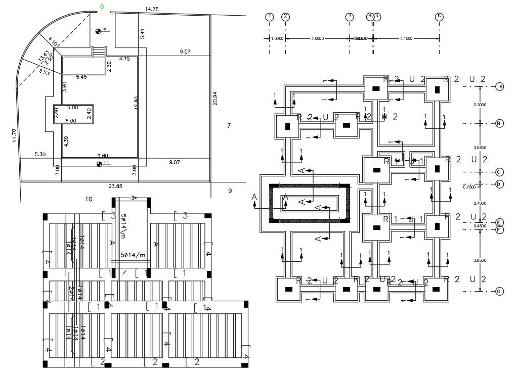 2d CAD drawing of architecture house construction plan drawing includes column footing (foundation plan) with excavation drawing, reinforcement slab bar, and housemaster plan design. download the construction plan drawing.