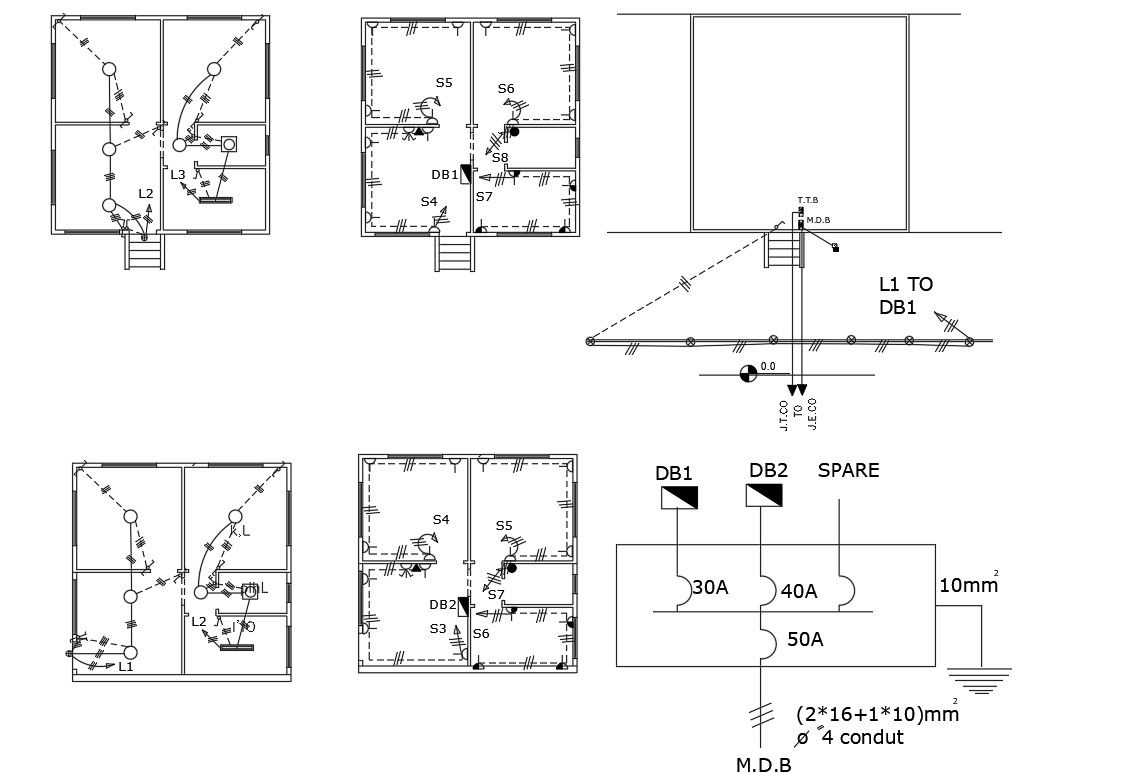 2d CAD drawing of 26 By 26 Feet House Electrical Layout Plan design includes ceiling light point and wiring plan with switchboard installation marking detail. download house electrical layout plan DWG file.
