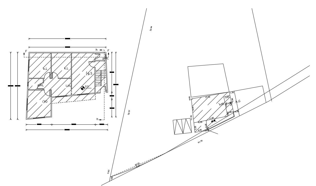 download free DWG file of 2 BHK house floor plan with site plot land survey detail also has the ground floor has a parking space to accommodate 2 big cars.