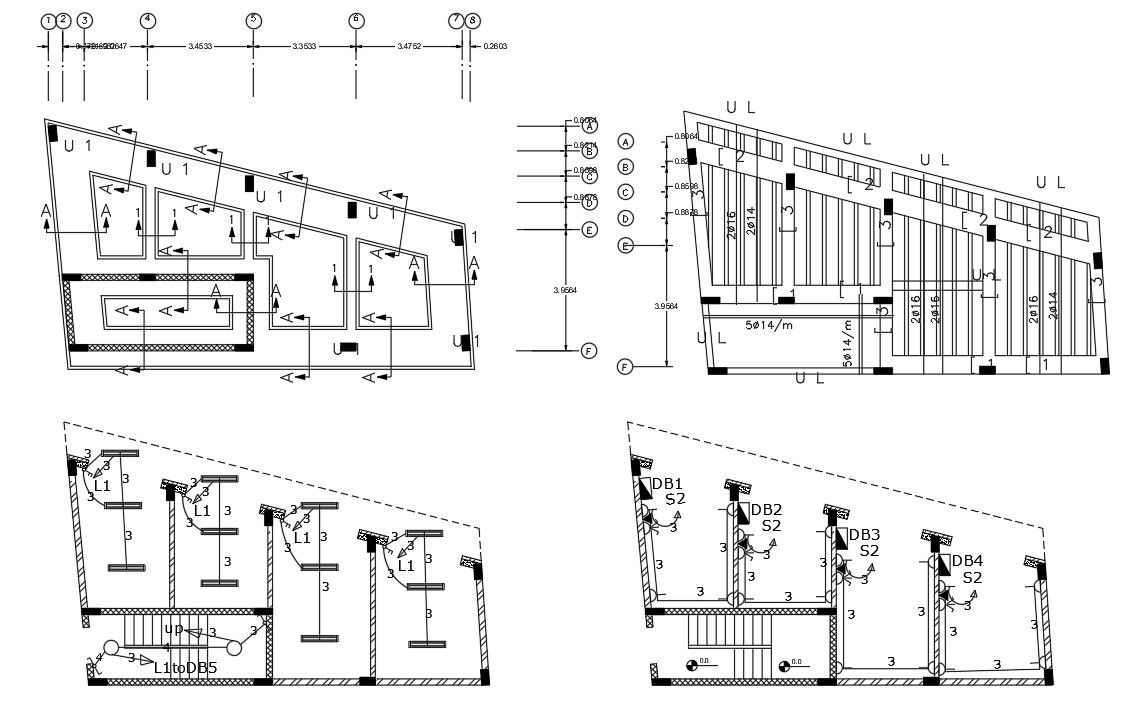 2d CAD drawing of shop on the ground floor and first floor 2 BHK residence house plan construction working plan includes foundation with slab bar and electrical layout plan design. download DWG file of the shop with house project.