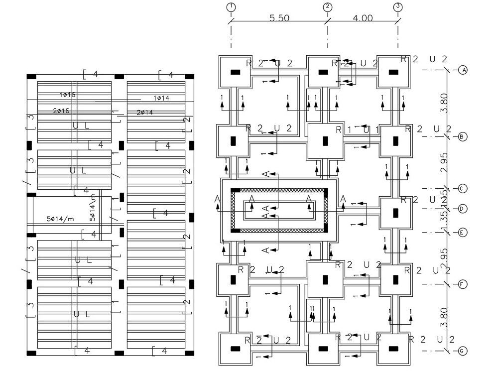 Download free DWG file of apartment house construction working plan includes a foundation plan and slab bar structure design