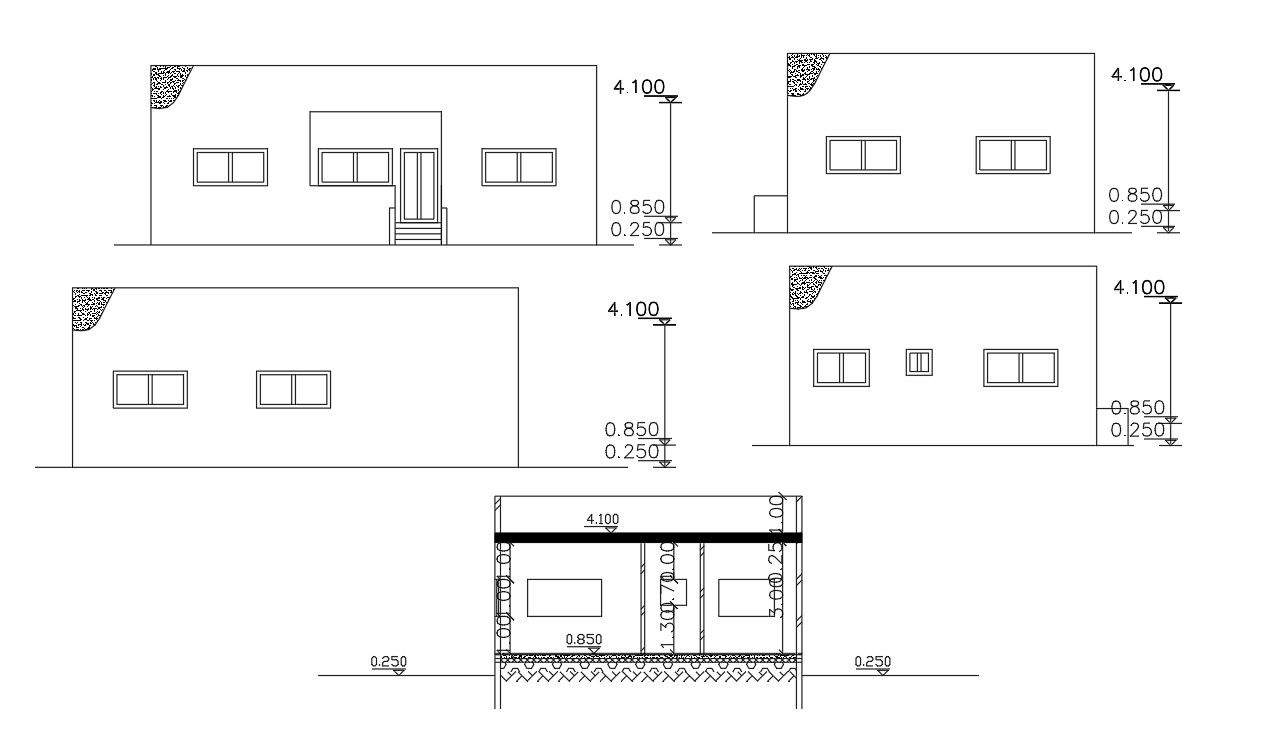 Download free CAD drawing of single storey house building sectional elevation design with dimension detail. Download 40 feet width and 26 feet depth of one level house building design.