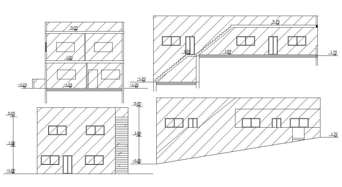 Download joint house 2 storey building section and elevation design that shows door and window marking with dimension detail.