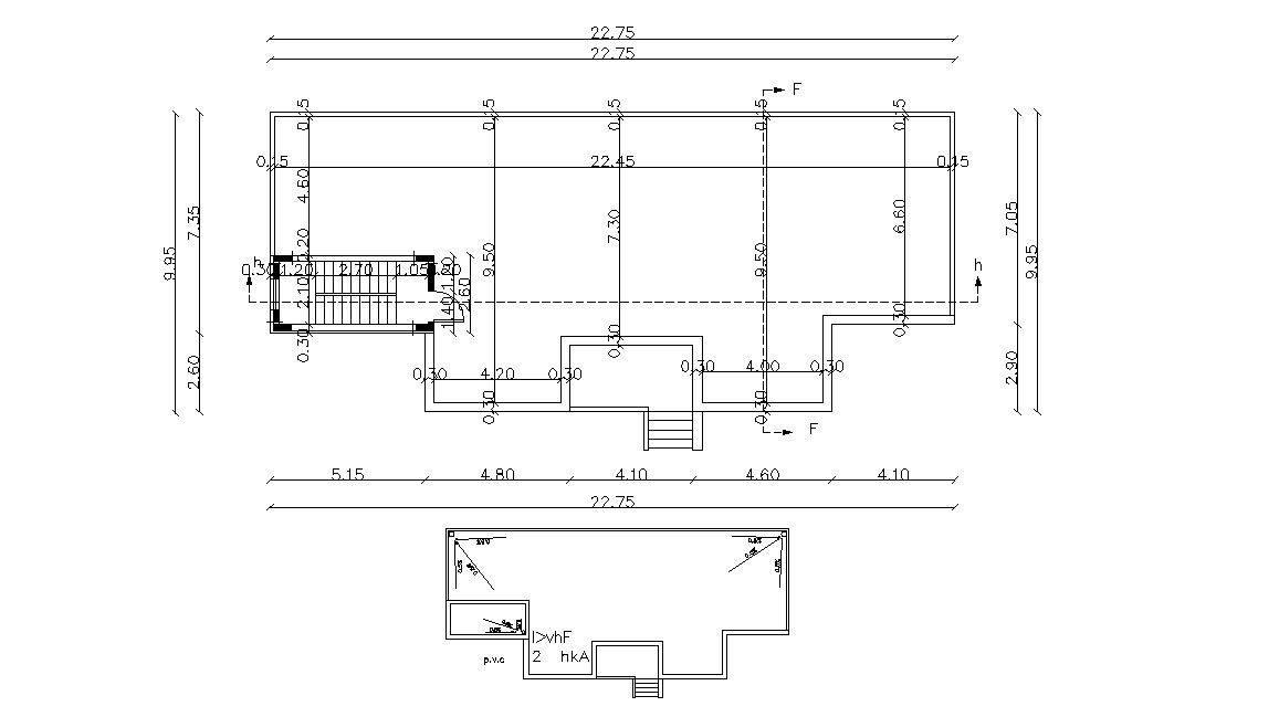 Download free 30' X 75' feet plot size house terrace plan CAD drawing includes the stairs come up on the terrace with dimension detail.