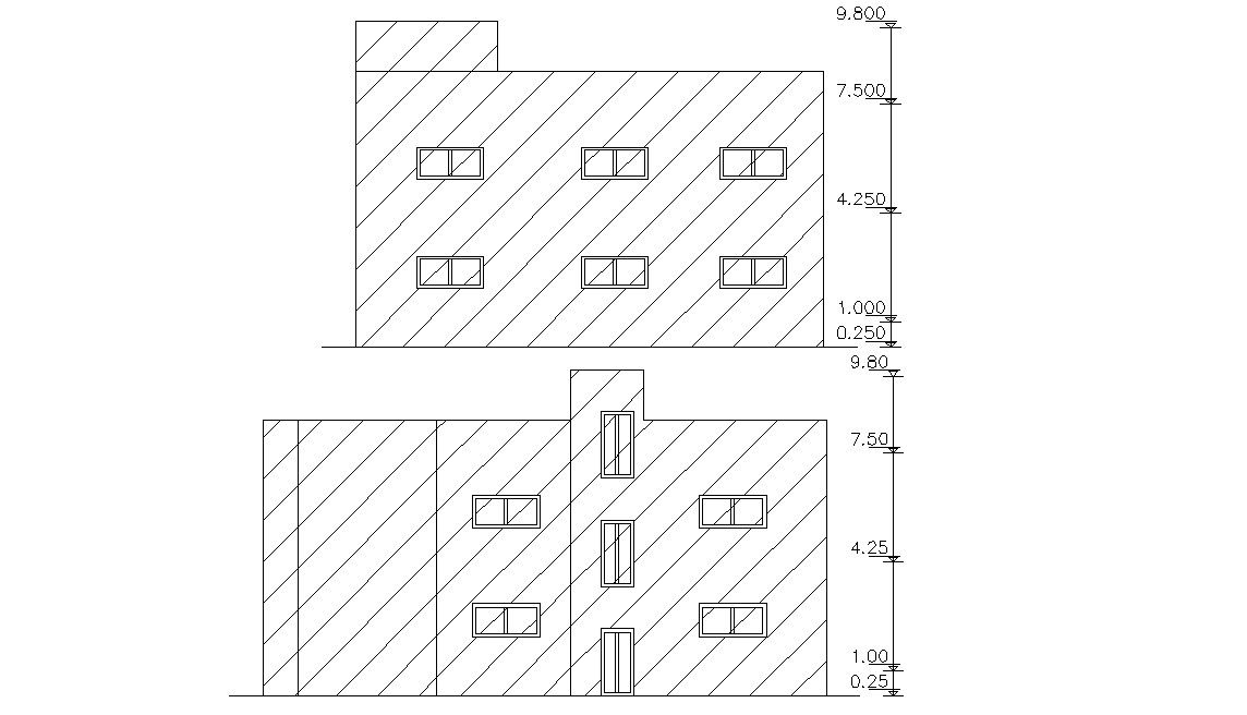 4500 Sq Ft House building front and rear elevation design that shows 2 storey building structure with dimension detail, door and window marking detail.