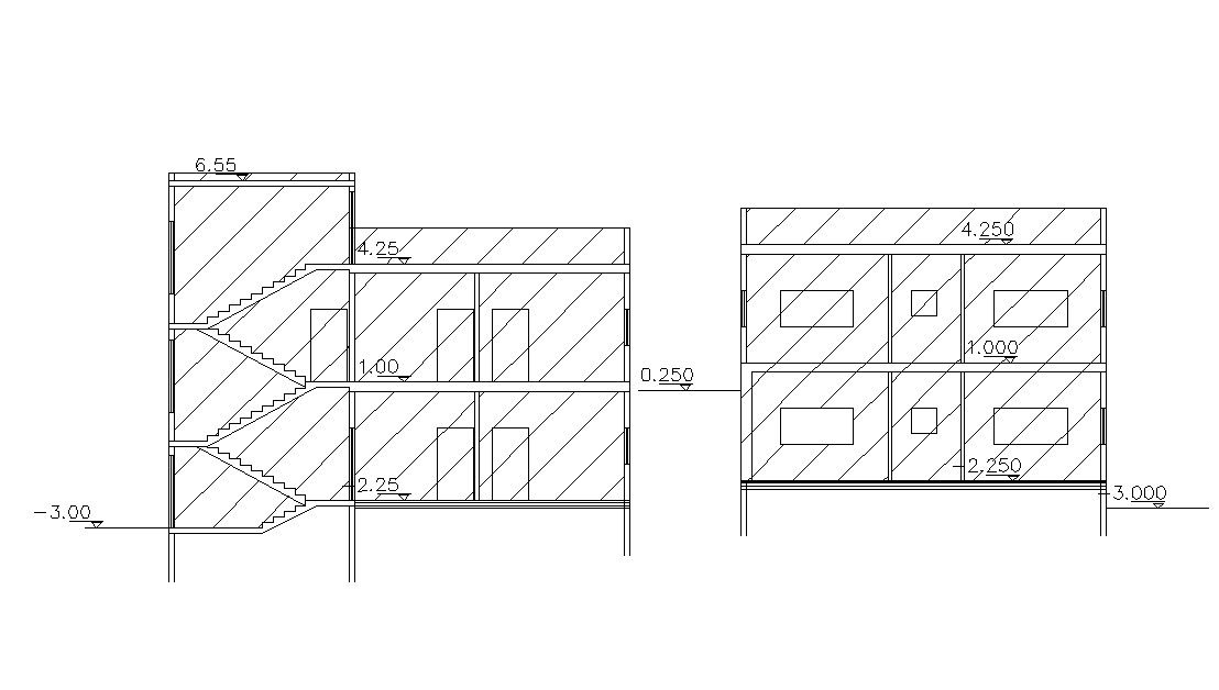 download free 2 storey house building section drawing includes a front and side view with dimension detail.