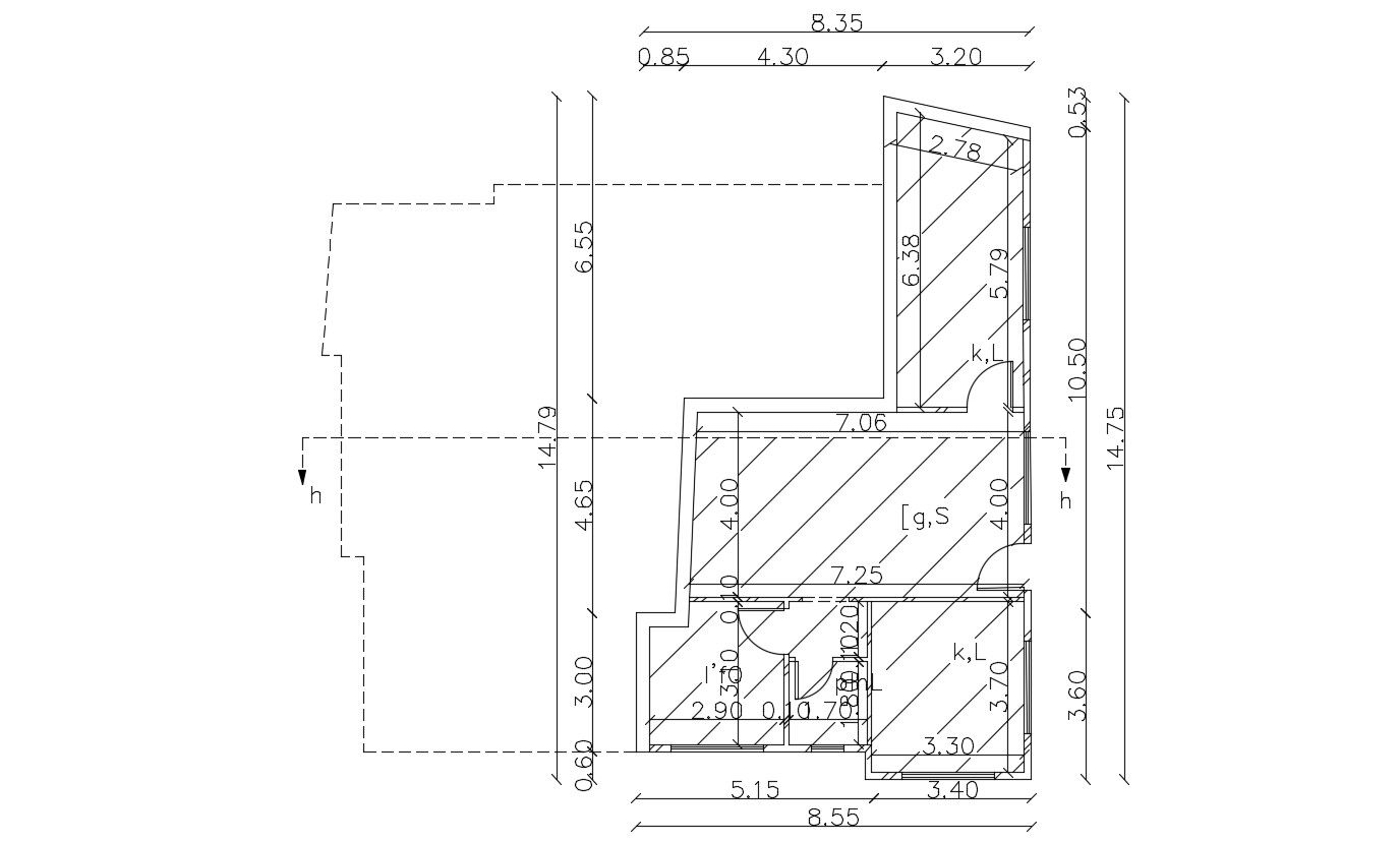download free DWG file of first-floor house plan includes 2 bedrooms, living lounge, and bathroom with all dimension detail.
