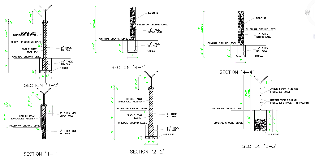 This footing section detail in the drawing and depth detail & plaster use of materials detail in this design,
