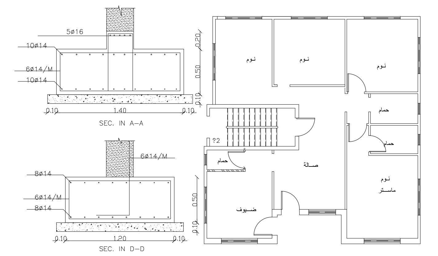 House Floor Plan And Column Footing CAD Drawing