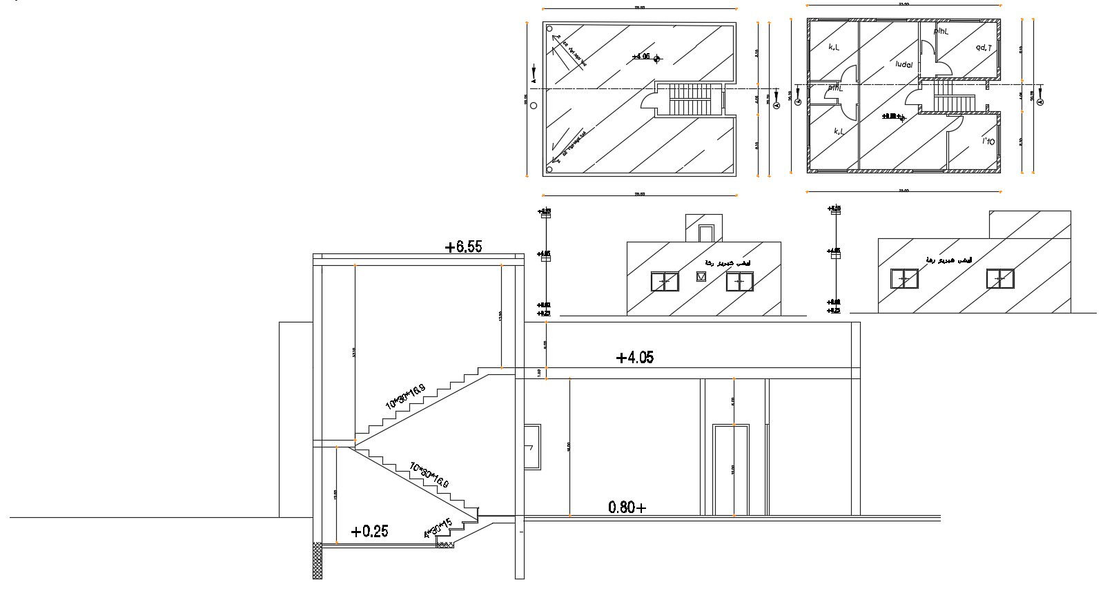 2 BHK House Building Sectional Elevation Design Free Download