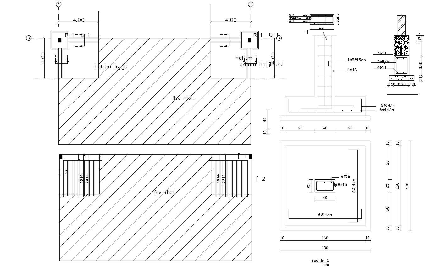 download free DWG file of construction working plan includes foundation on corner and column with RCC slab bar structure design. also has a column footing top plan and side view design with marine measurement detail.