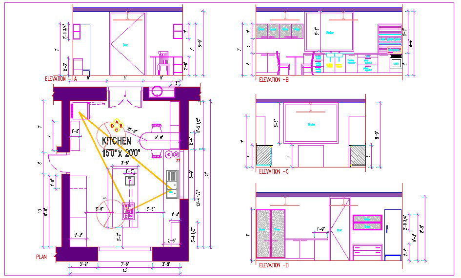 Kitchen Electric Lay-out & aa side Elevation design in clude the detail & all furniture detail.