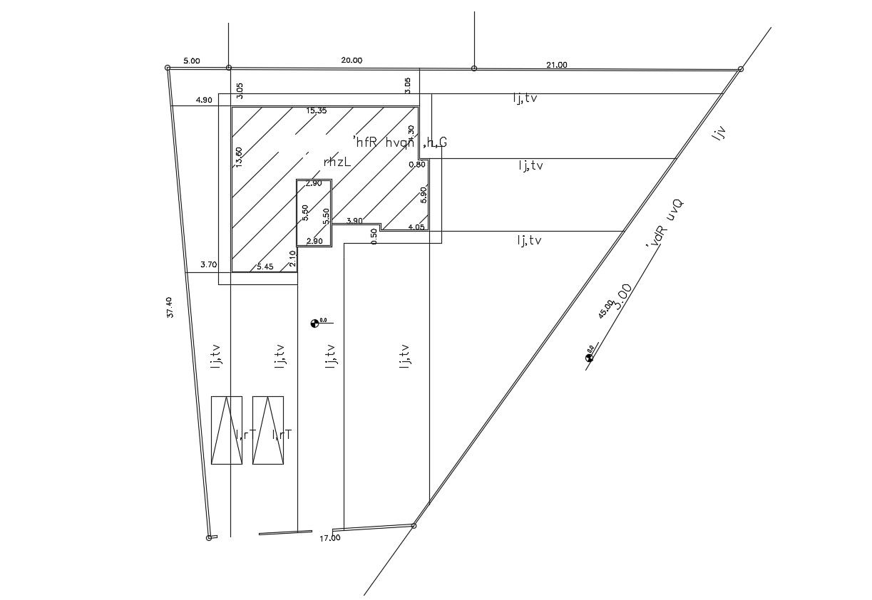 42 by 50 feet plot size for house ground floor plan includes 2 big car parking spaces, garden and build-up area with Margie dimension detail.