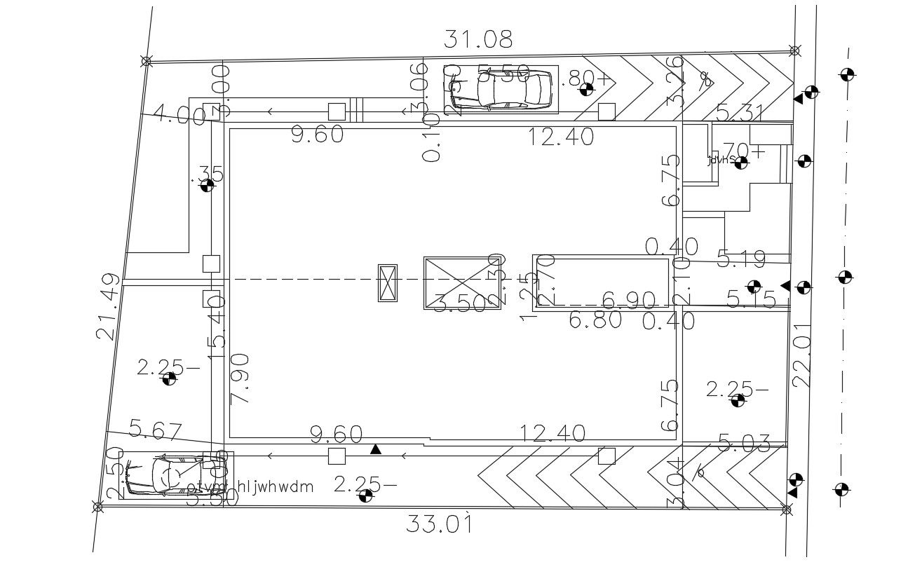 Download free DWG file of house site plan CAD drawing that shows build-up area, compound wall and parking with ramp design.