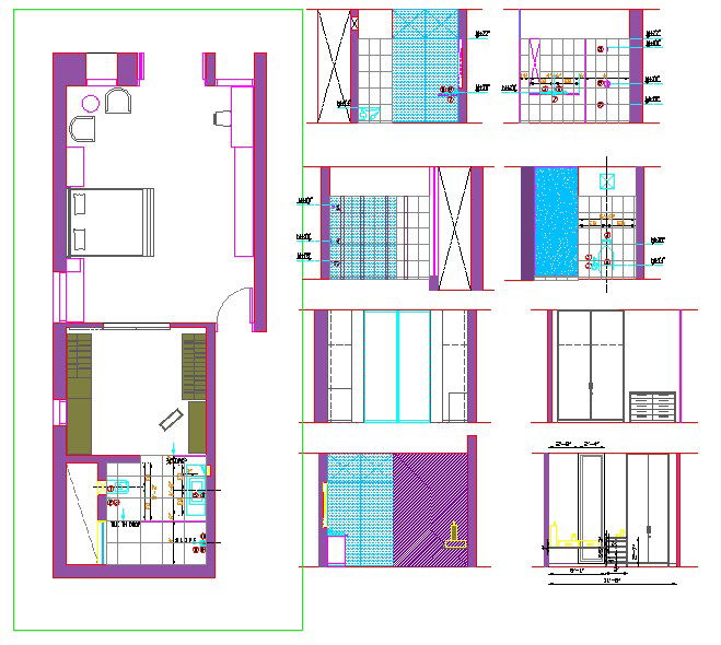 this bed room design with bathroom detail & lay-out & elevation bathroom design