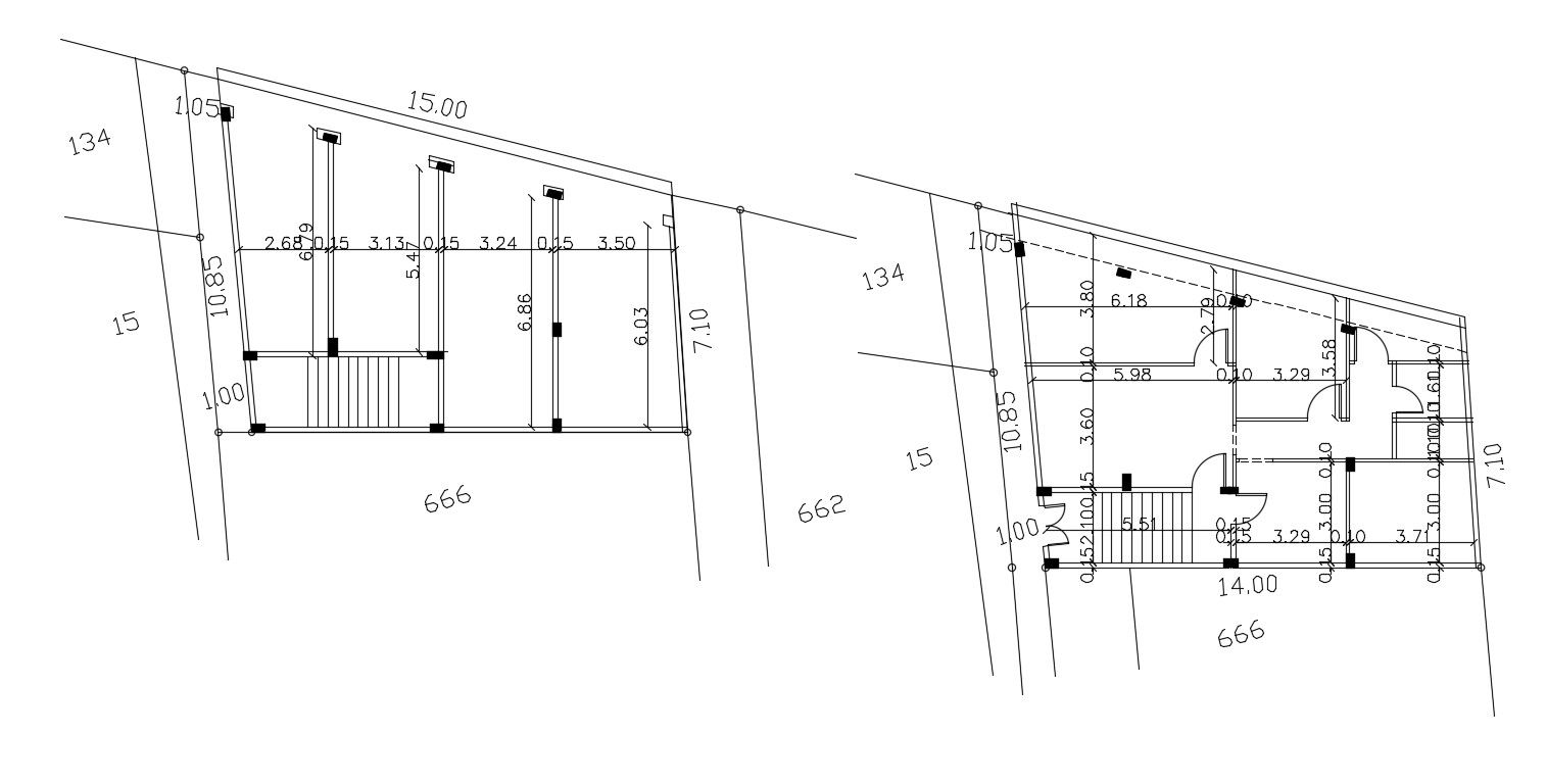 2d CAD drawing of the ground floor plan shop and top floor residence house plan includes column layout plan and dimension detail. download shop with house plan design DWG file.