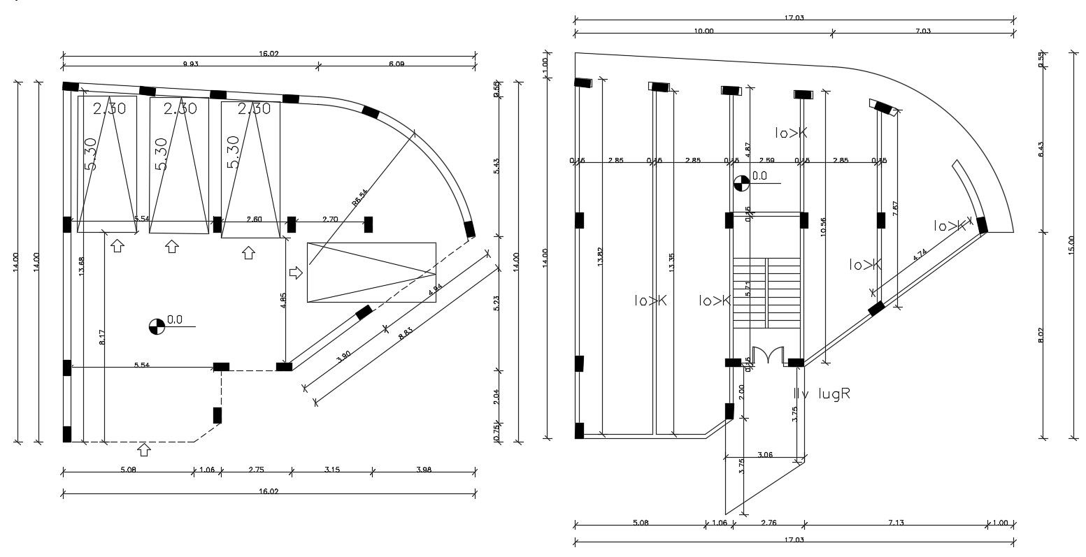 17 by 14 mete plot size for ground floor car parking and top floor shop plan design with column layout plan CAD drawing. download parking with shop plan free DWG file.
