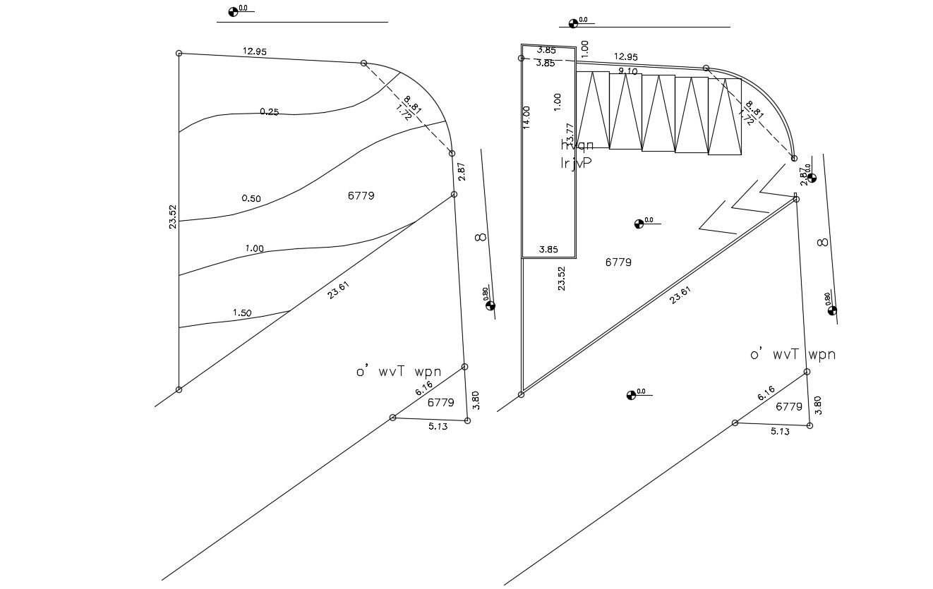 download free DWG file of ground floor parking plan with site plot land survey detail and margin dimension mention in CAD drawing.