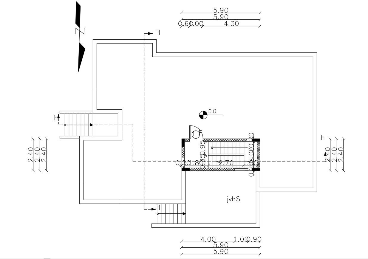 Download free DWG file of residence house terrace plan design that shows staircase with column and dimension detail.