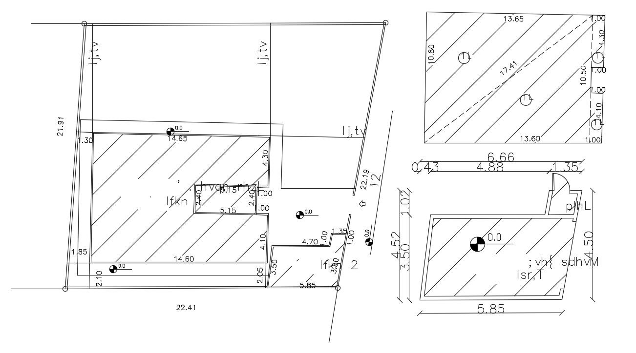 Download free DWG file site town plan design that includes land survey detail, build-up area, and entrance gate with car parking space.