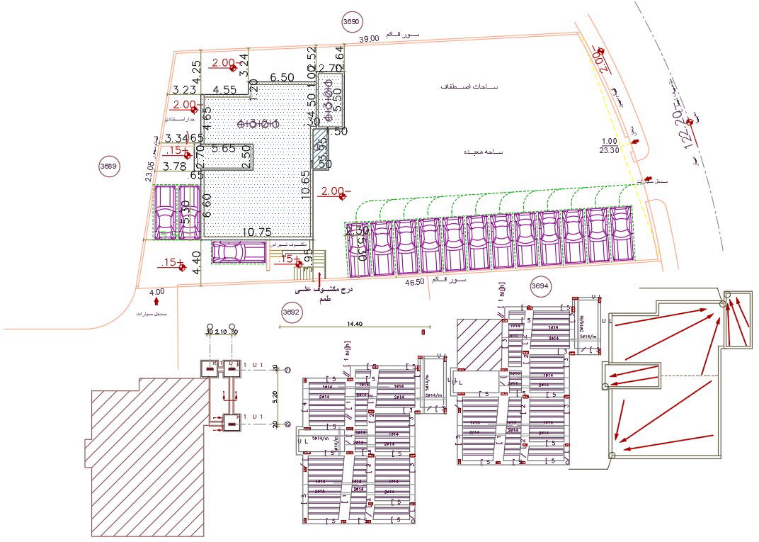 2d CAD drawing of college institute master plan with site plot plan design that shows build area and vehicle parking lot design. download college plan design and get kore detail column and slab bar structure design DWG file.
