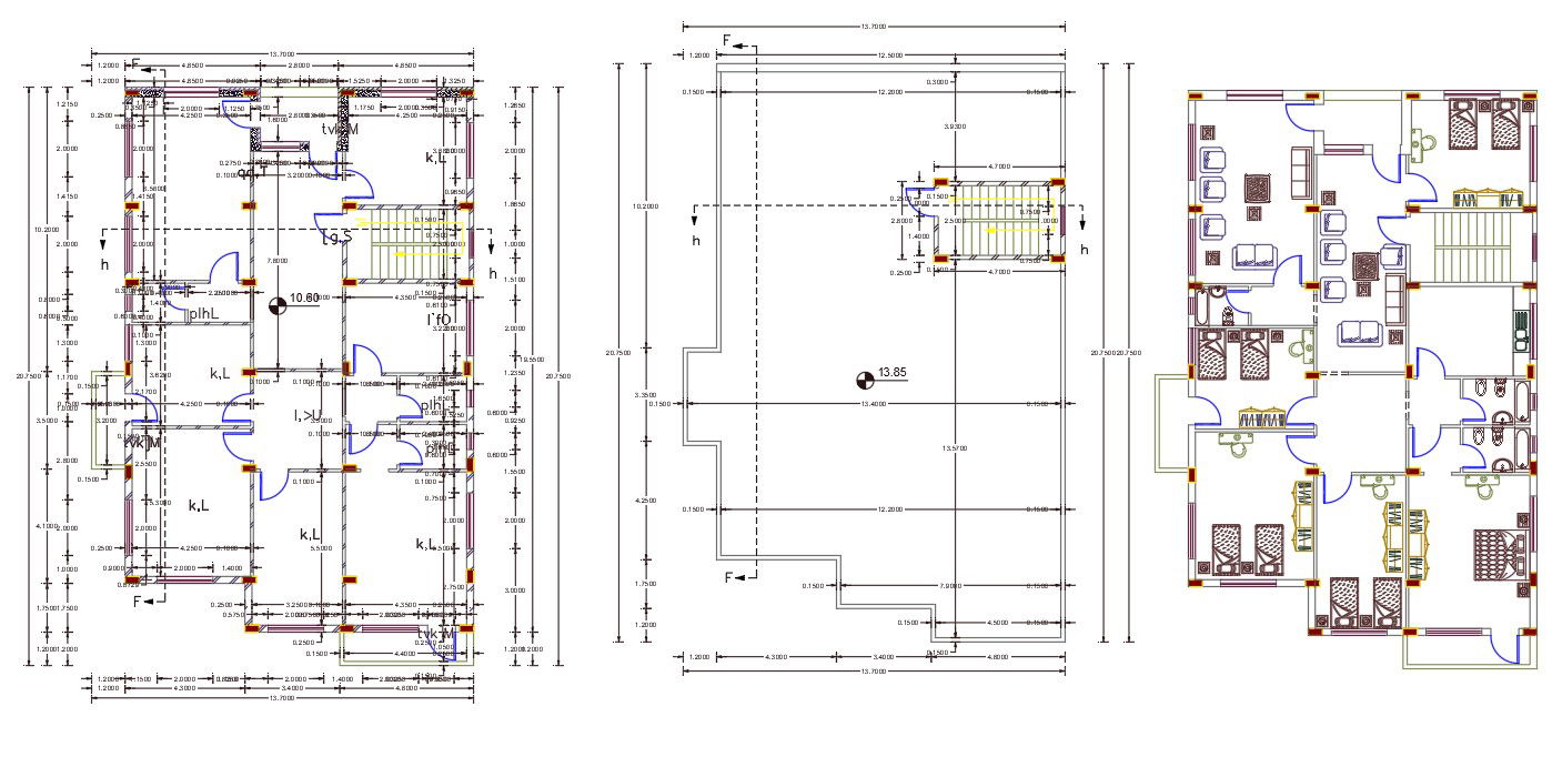 289 Square Yards plot size for architecture apartment furniture layout contains spacious 5 bedrooms, living, kitchen, drawing and living rooms. The Bedroom in the plan has an attached toilet and common toilet is attached to the living area also for the guests. download 40 by 65 feet apartment plan design DWG file.