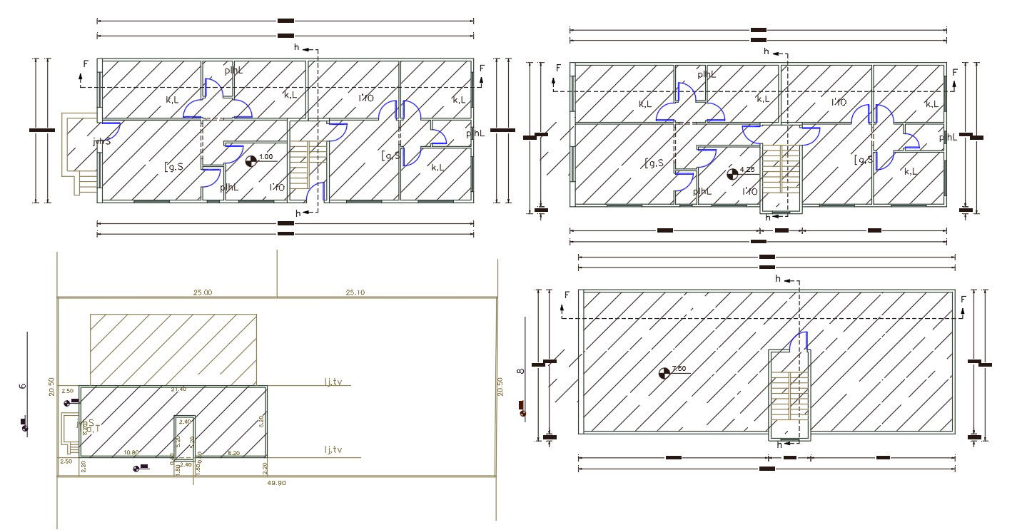 AutoCAD drawing of 26 by 68 feet house residence floor plan design that shows 2 unit house with all dimension and door marking detail. download 2 BHK apartment house with master plan design DWG file.