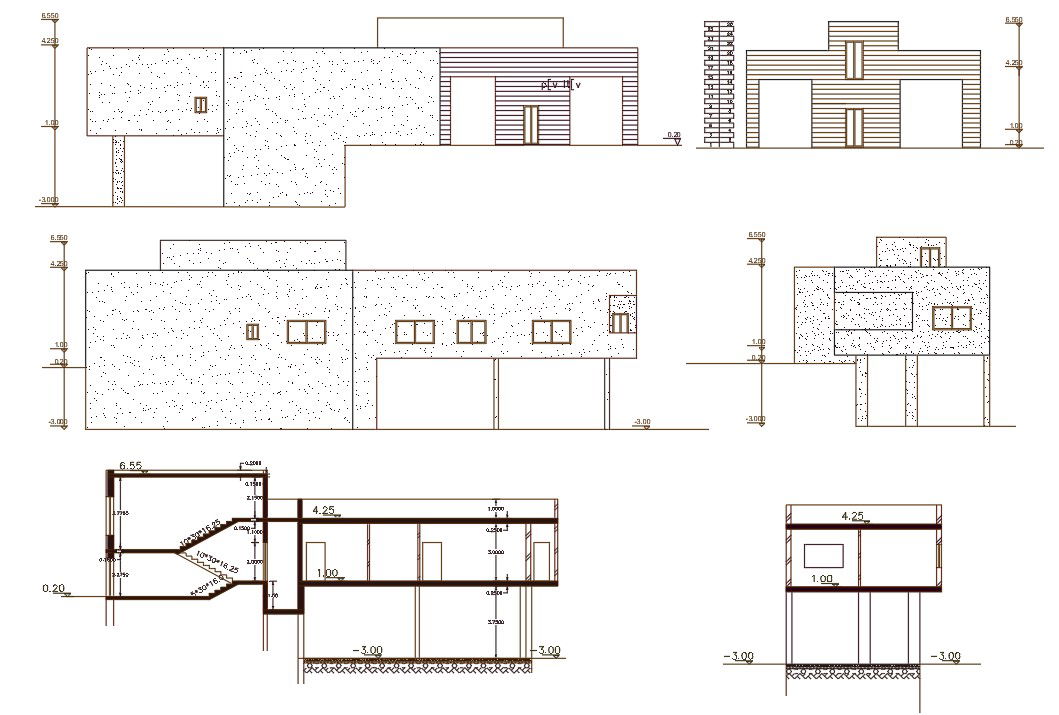 2D CAD drawing of shop with house building CAD drawing that shows front side shop and back side 3 BHK residence house building design. download AutoCAD house building design with car parking on ground floor DWG file.