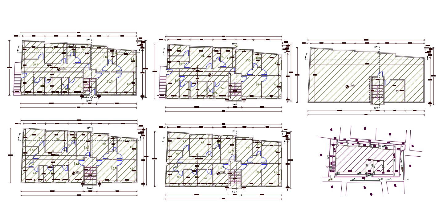 The architecture apartment house building floor plan design includes 4 BHK and 2 BHK apartment floor plan design with all dimension detail. also has a master plan for land survey, and build up area detail. download AutoCAD apartment plan design DWG file.