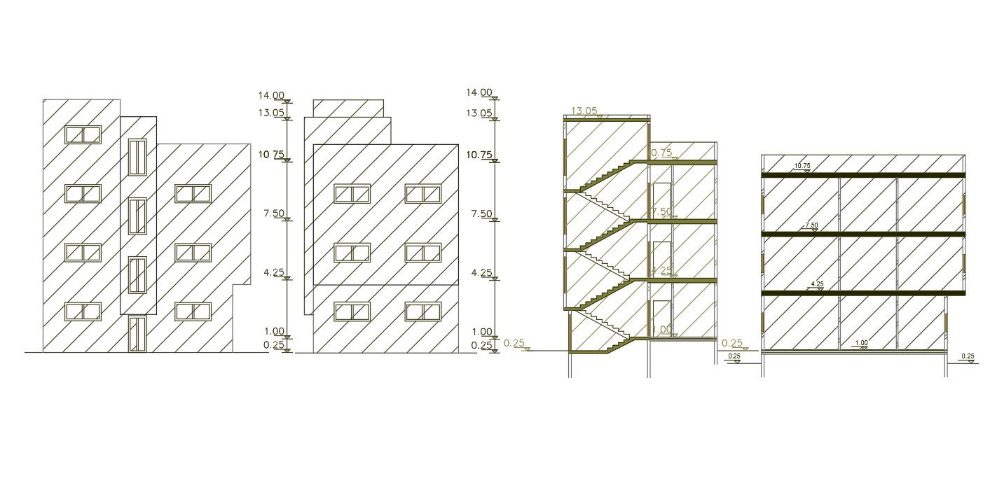1150 Sq Ft Apartment Building Sectional Elevation Design